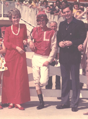Jordan in the Winner's Circle with actress Barbara Rush and winning jockey, Robert Breen.